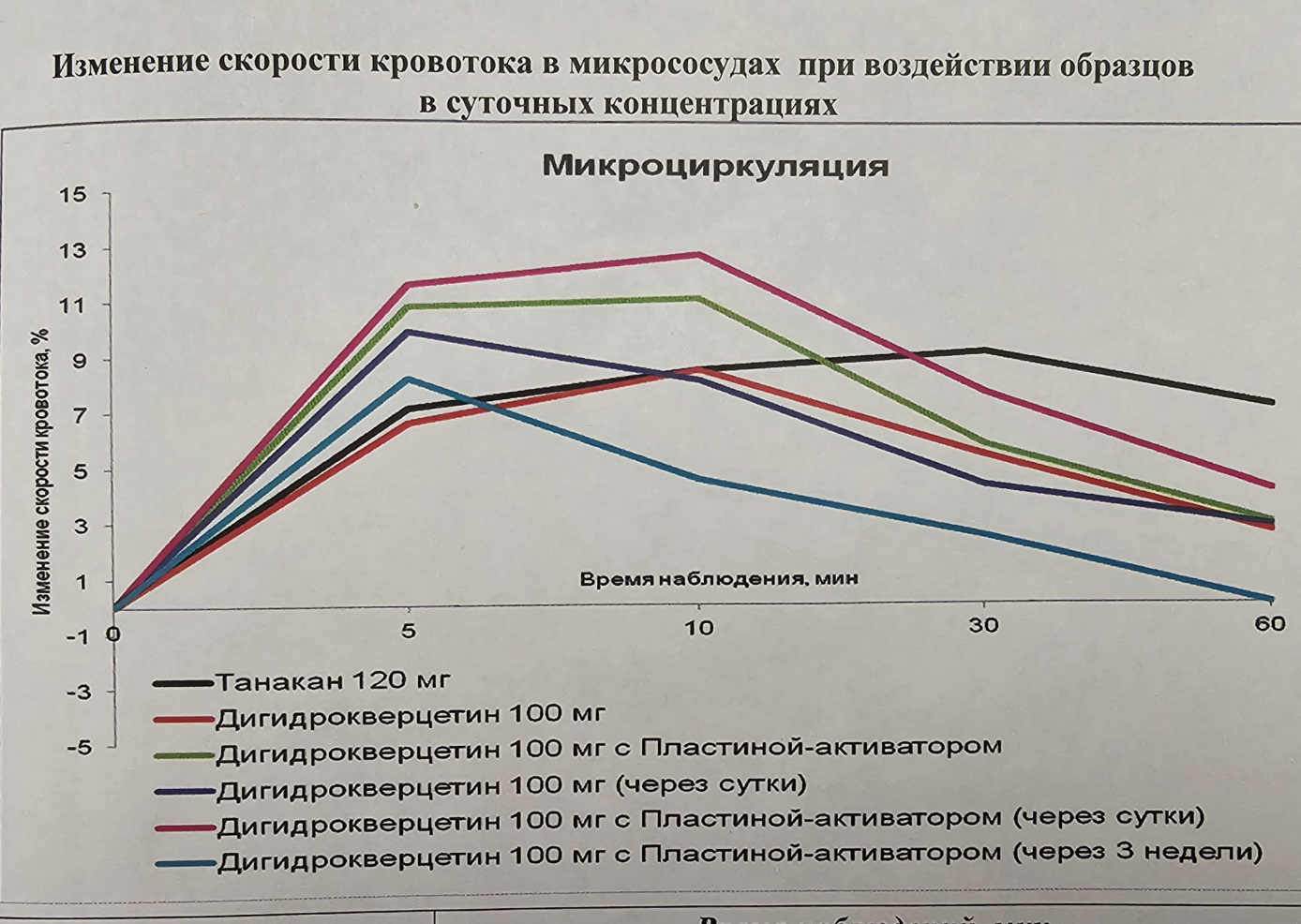 Полученные данные указывают на наличие статистически регистрируемых изменений параметров капиллярного кровотока в исследуемой модели при воздействии пластины. Характер выявленных изменений свидетельствует о наличии биологического отклика, механизм которого требует дальнейшего изучения.